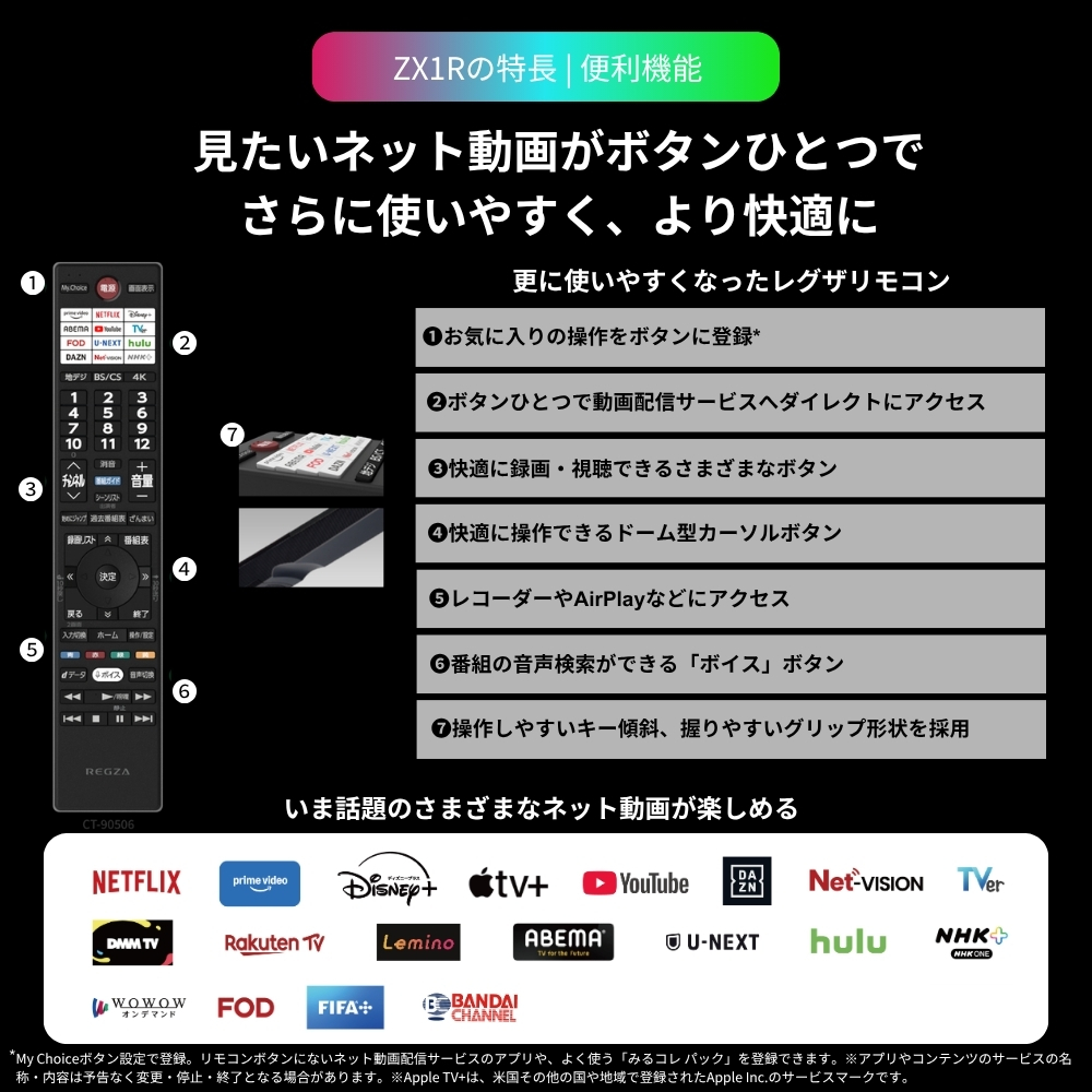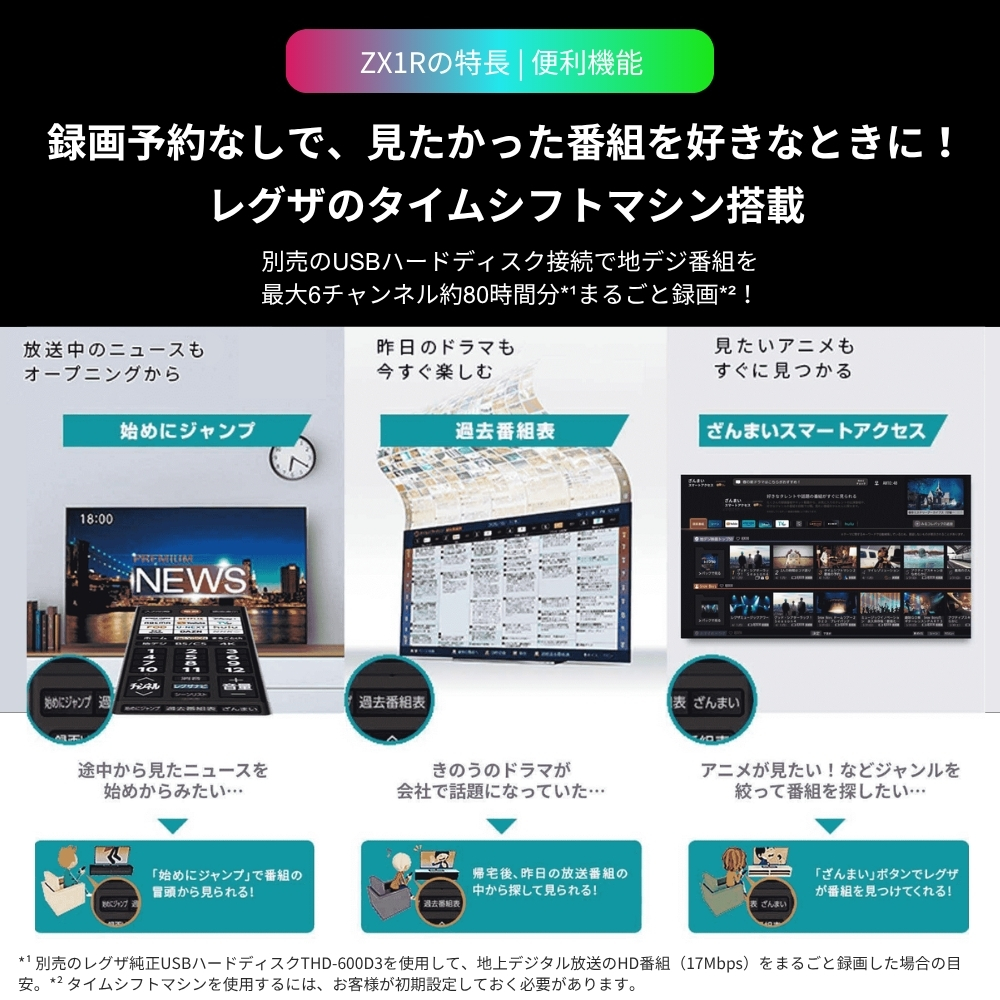 オンラインストア」取扱商品は、お客様ご自身が日本国内で使用することを前提に販売されたものです。自己または第三者の営利を図る目的で転売もしくは貸与された、または日本国外で使用された「レグザ
